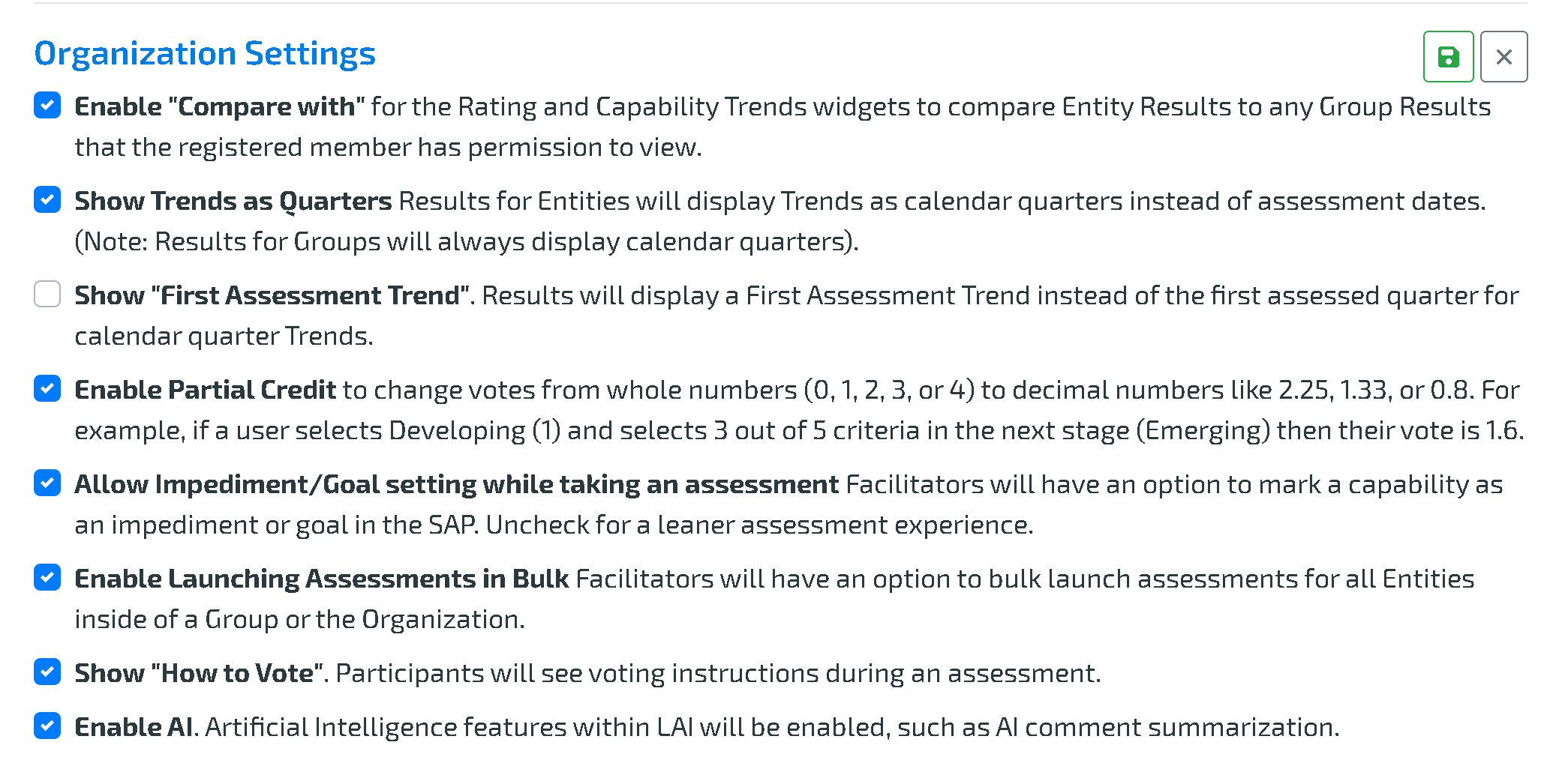 2.) In the Organization tab, under Organization Settings, check Enable Launching Assessments in Bulk.