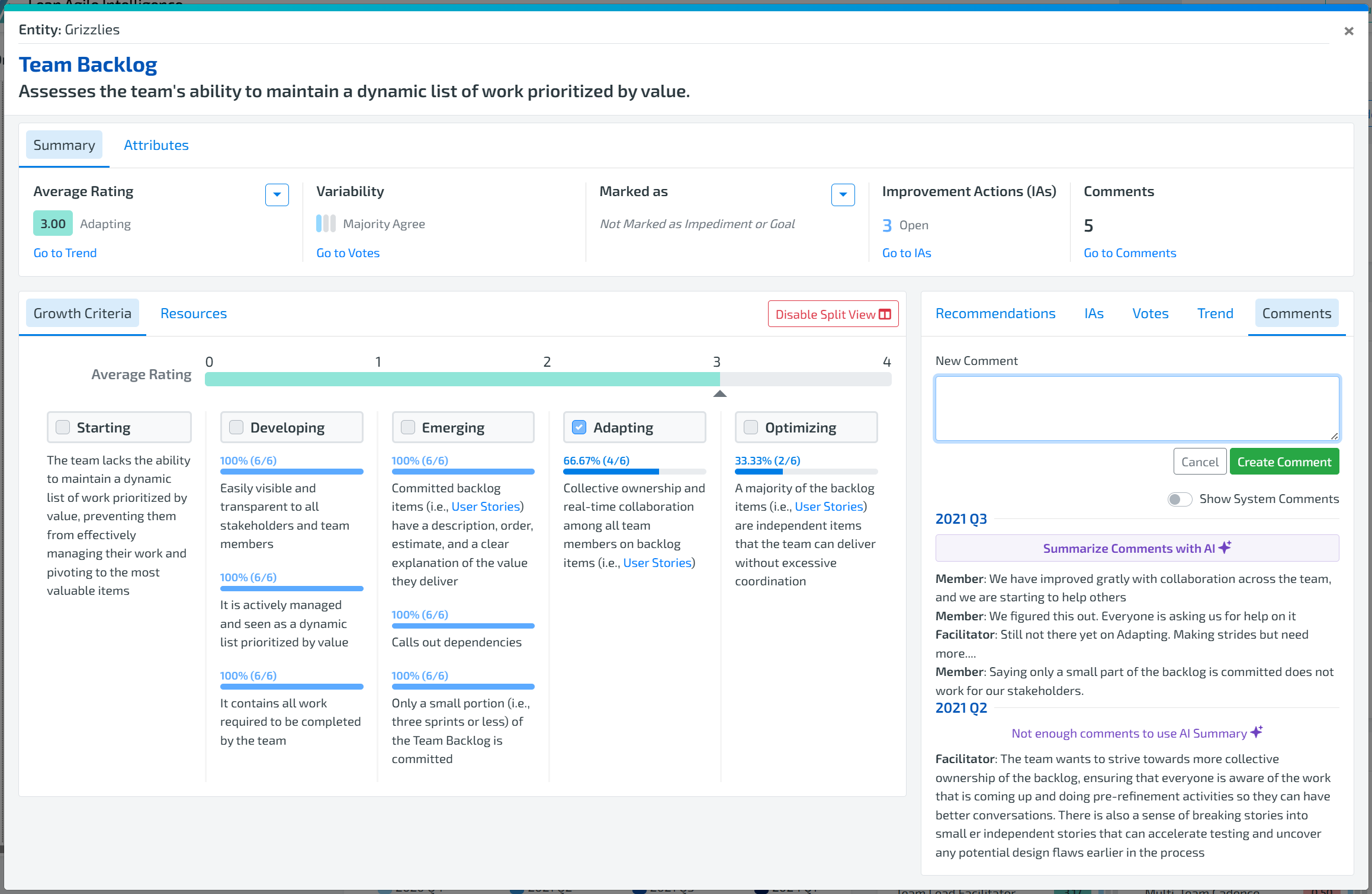 Trend – Historical data showing how the capability’s rating has changed over time.