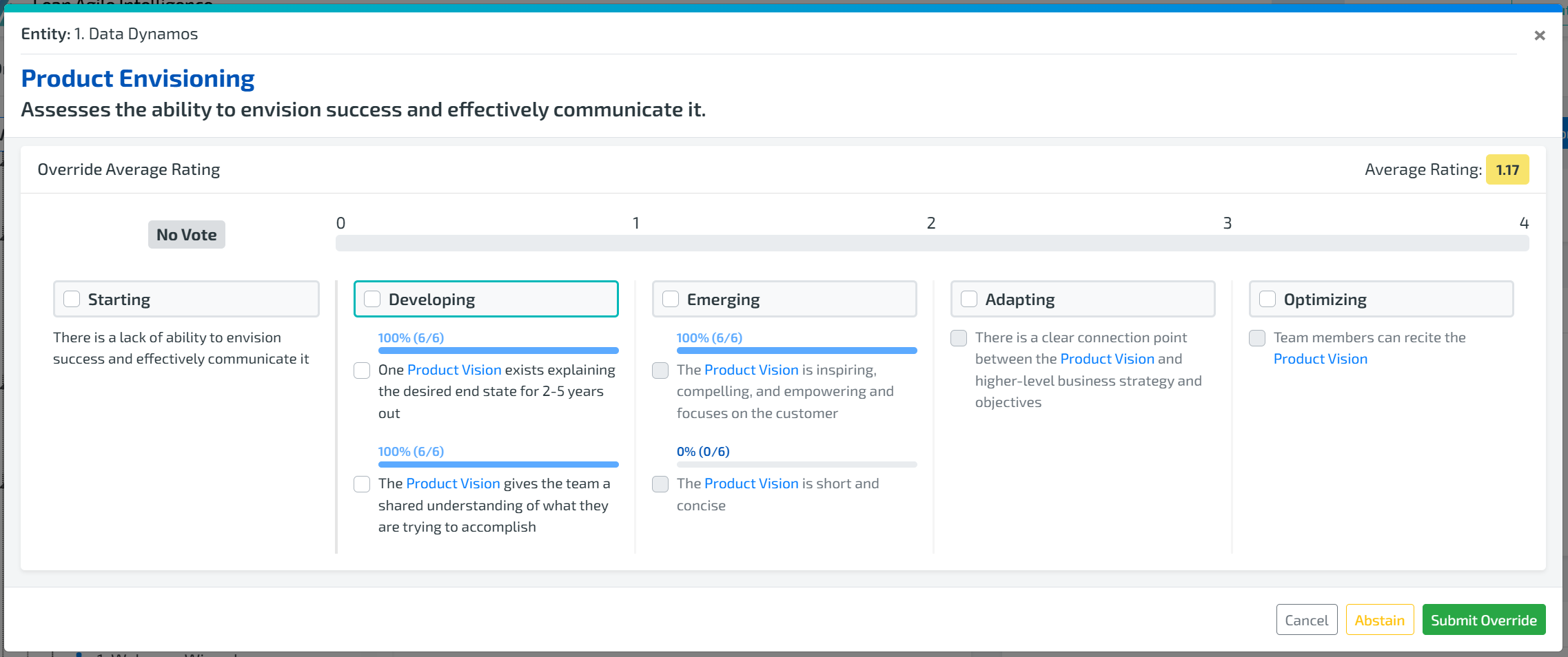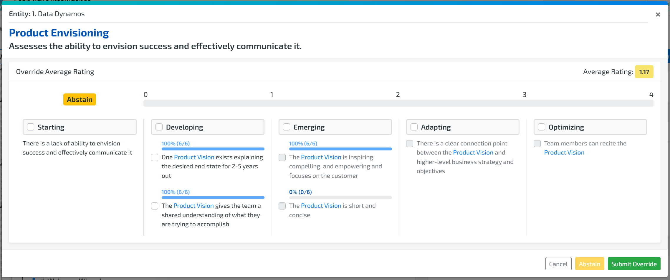 After overriding, the Growth Criteria section still shows the original votes, but the displayed Average Rating will reflect your override.