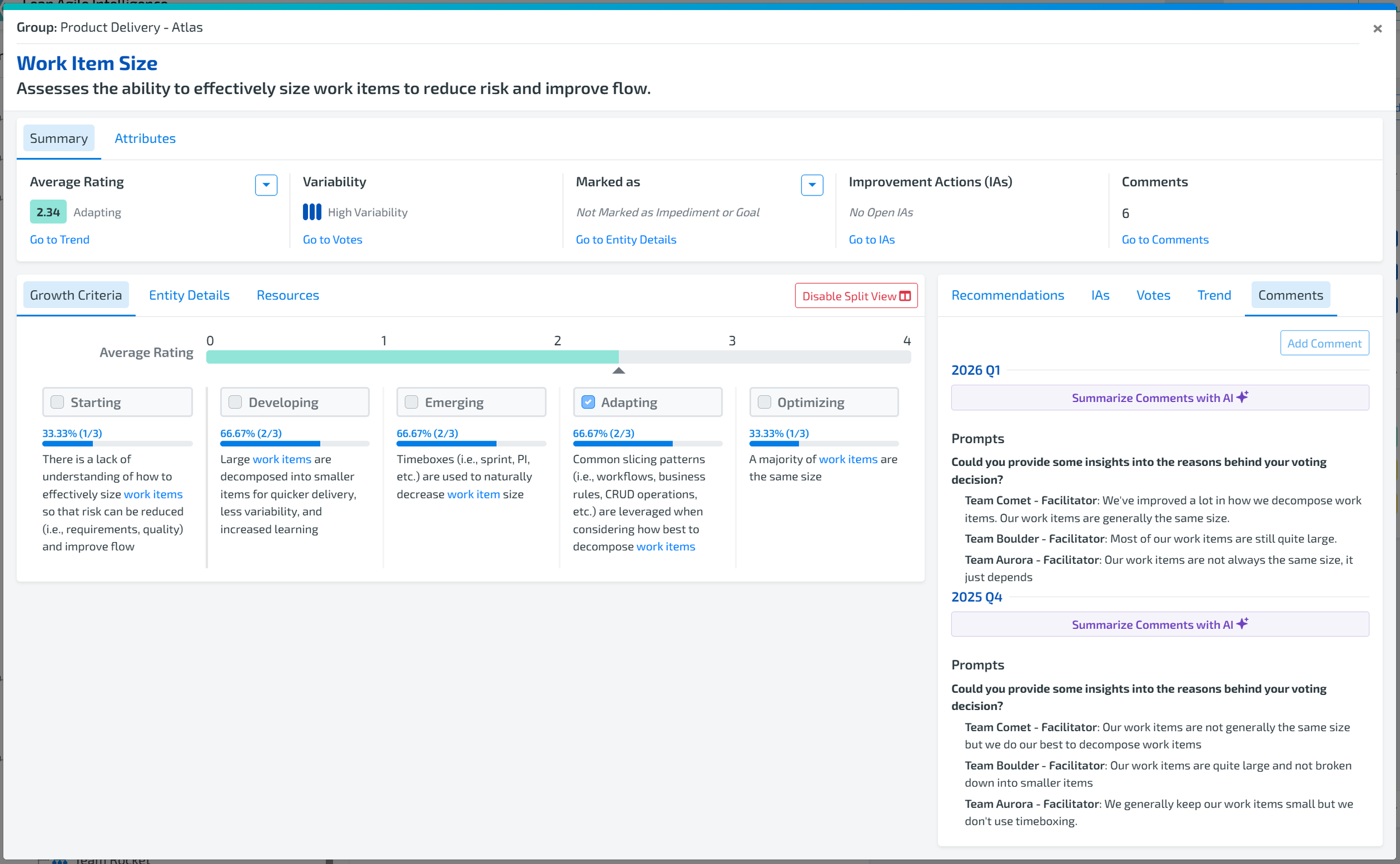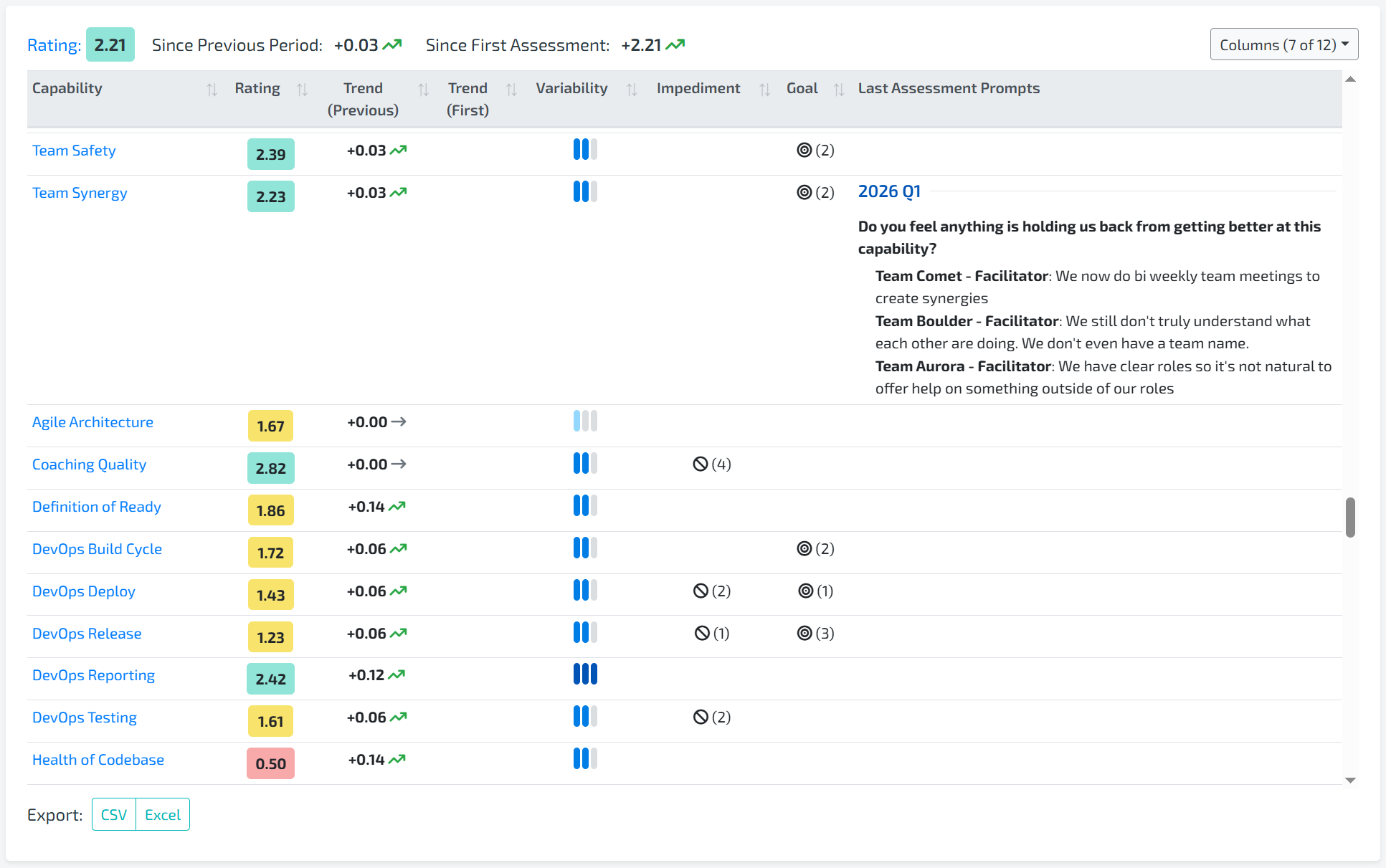 Prompt responses are available alongside additional comments in the Capability Details Dashboard or Capability Drilldown.