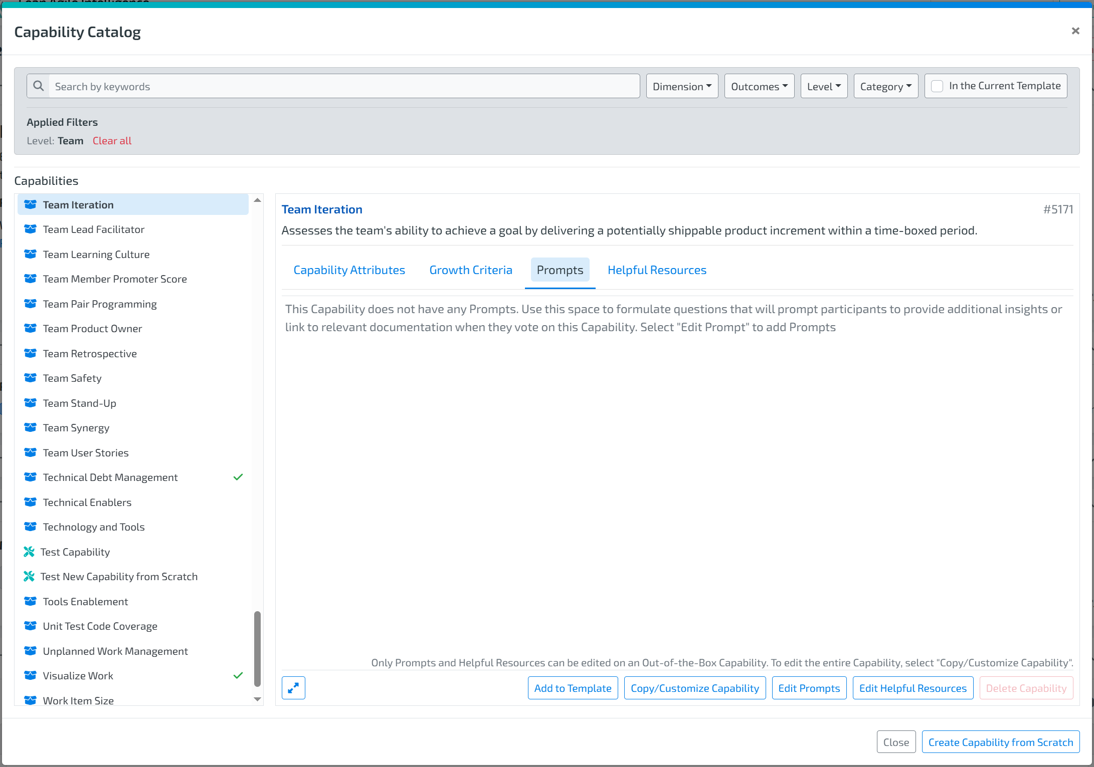 As an Admin, select a Capability Template where you want to set up the capability prompts and click View/Customize.