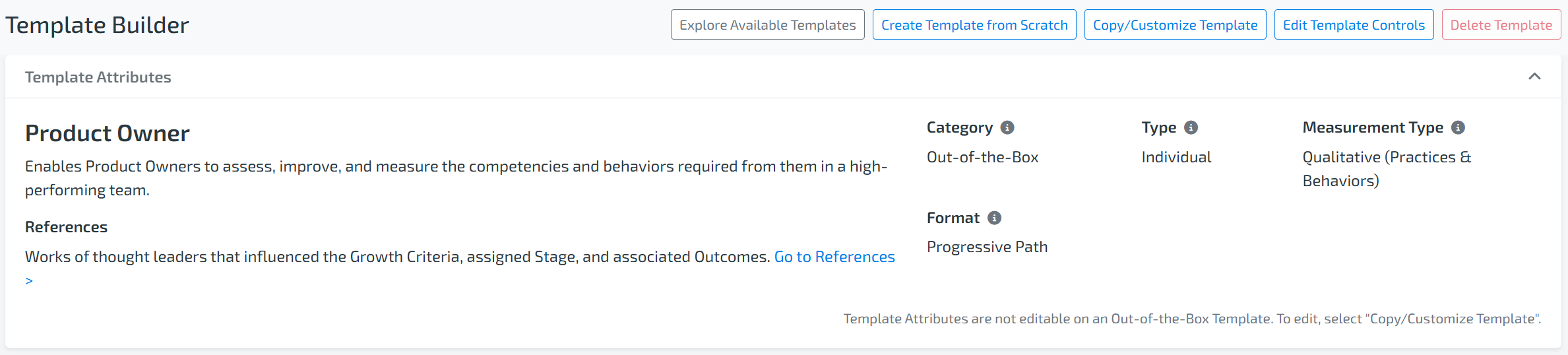 Note: Existing “Capability Templates” cannot be modified if they are “Out of the Box” templates. The Edit button will not be available in this case. However, they can be copied by selecting “Copy/Customize”.