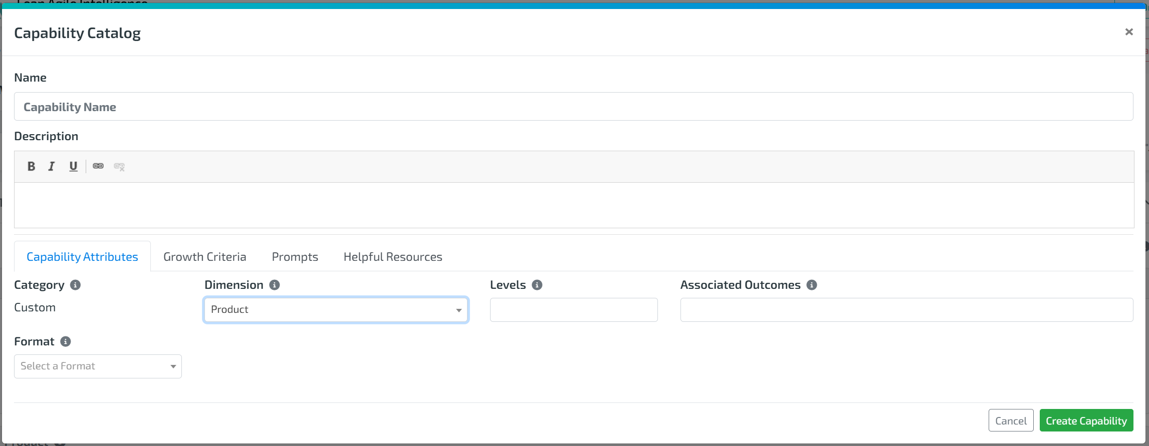 When editing an existing template or creating a template from scratch, select the “Create Capability From Scratch” button.