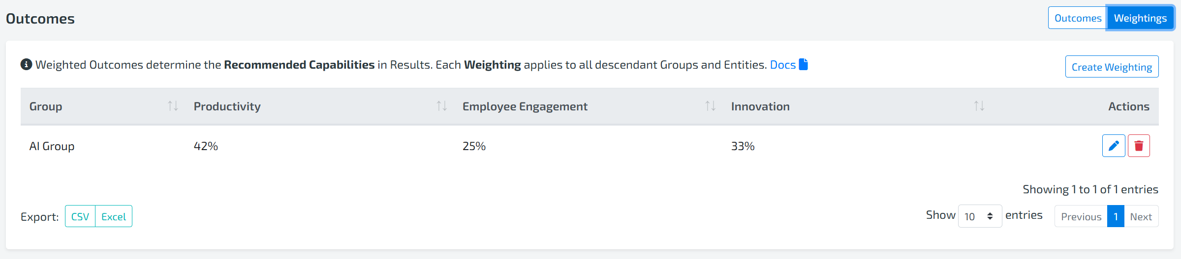 These weightings are reflected in Results → Insights Canvas -> Recommended Capabilities widget